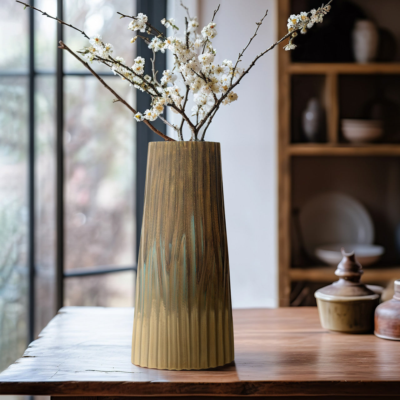 Add a touch of glamour to your decor with the 17" LAMIS Small Metal Cast Vase in Gold from Sagebrook Home. This beautiful vase boasts the same high-quality metal construction and opulent gold finish as its larger counterpart, but in a more compact 17-inch size. Perfect for smaller spaces or as an accent piece, it brings a hint of luxury and refinement to any setting. Whether used alone or in combination with the larger vase, it creates a cohesive and sophisticated look that enhances your home's decor with its timeless elegance.