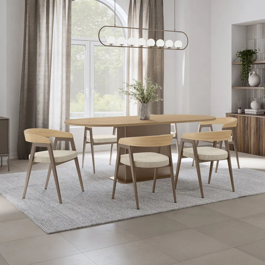 The Carmela Dining Chair captures the essence of modern Scandinavian design with a graceful balance of elegance and comfort. Its curved solid ash backrest flows seamlessly into armrests, while a plush upholstered seat invites you to relax in style. Sleek, fully welded steel legs add refinement and strength, creating a chair that’s as durable as it is timeless.