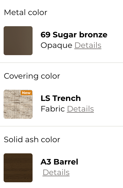 Covering: LS Trench (Fabric, 100% Polyester, 25,000 double rubs, Cleaning Code S)