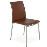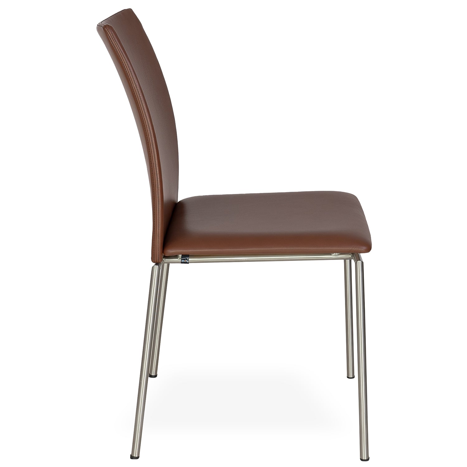 The armless SM 58 dining chair has a padded, double curved back and a wide seat, which provides an overly comfortable seat. The brushed steel offers an exciting contrast to typical wooden dining furniture. We currently only stock this chair in Black Leather.