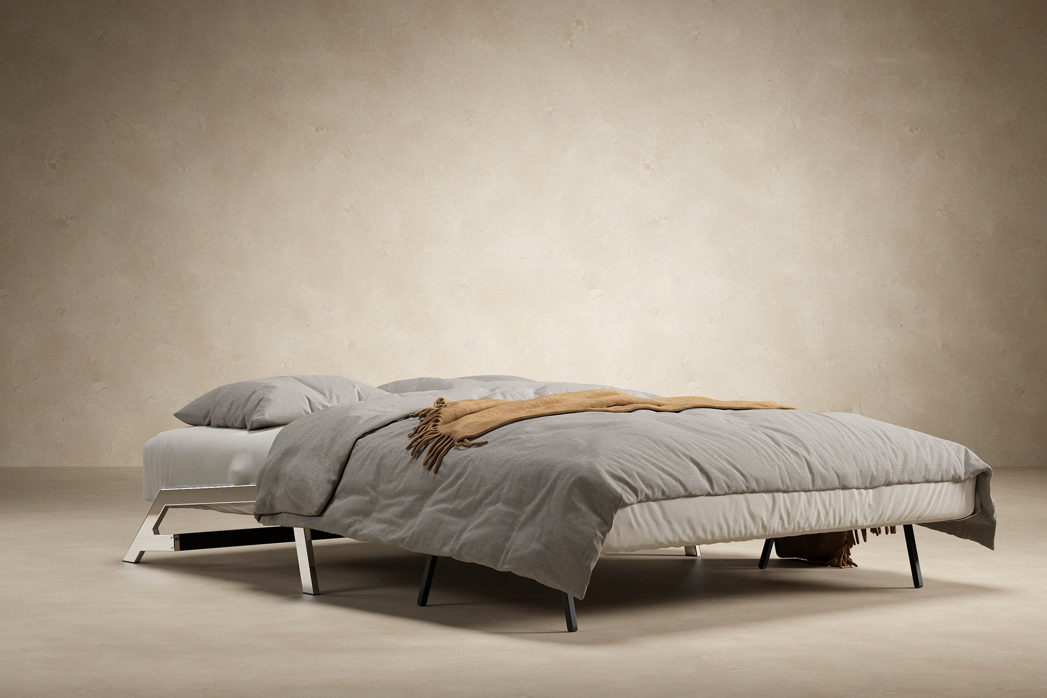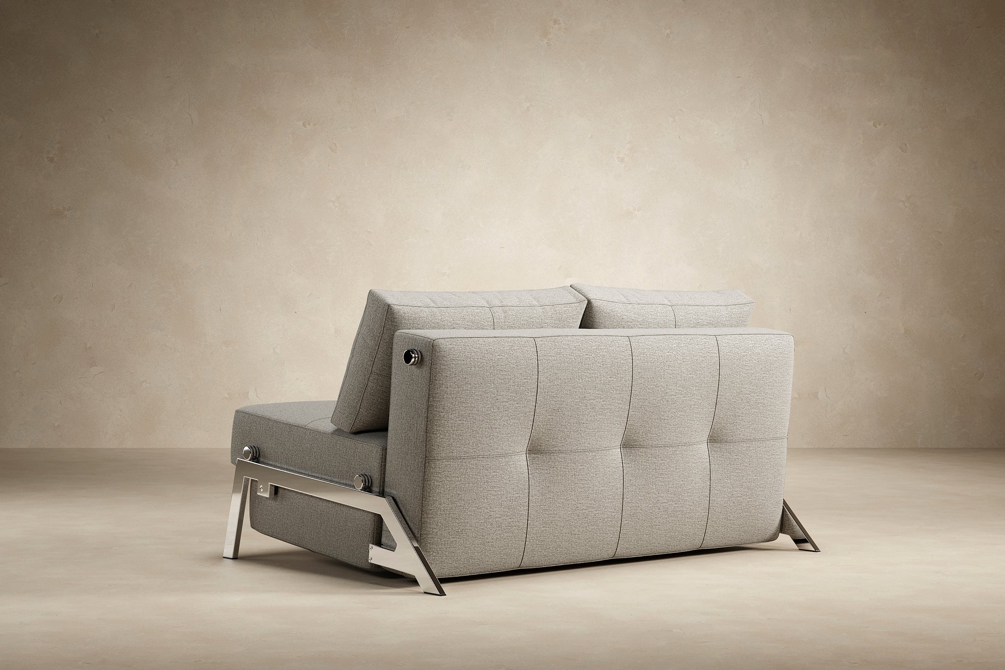 International modern design in a compact sofa bed that creates space rather than occupies it. With a sleek chrome leg frame and hidden bedding box, Cubed transforms from a stylish everyday sofa into a full-size bed in just seconds—without compromising form or function.