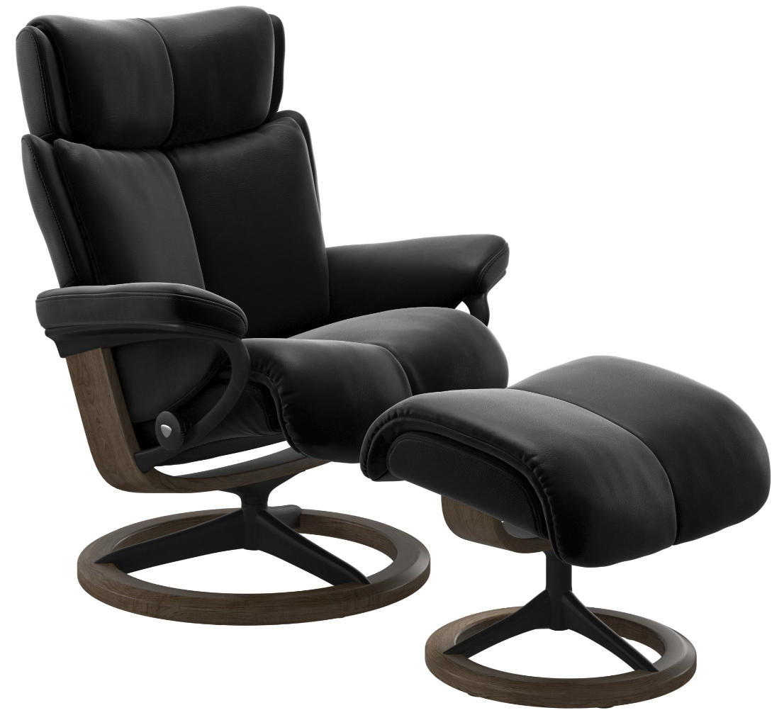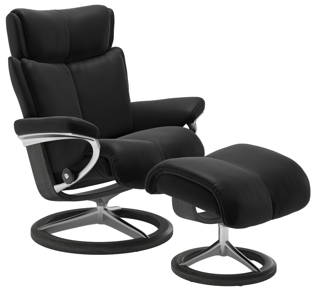 Fall under the spell of Stressless Magic from the innovators of comfort. Forty years of design expertise coupled with the very latest advancements in furniture making technology result in pure Magic! Extraordinarily luxe cushioning and carefully sculpted proportions make the Stressless Magic our most comfortable recliner yet. Using the Stressless patented Glide, and Plus systems, Magic responds to your body's slightest movement. Coupled with an adjustable headrest, Stressless Magic delivers superior support and unprecedented comfort. Today, the first ergonomically designed recliner remains the best.