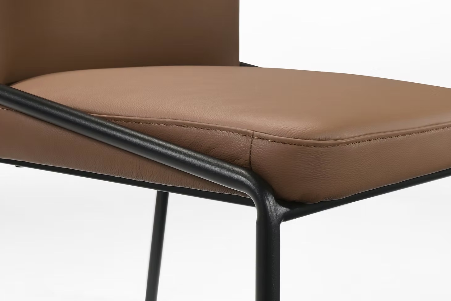 A sleek thin black metal tube frame provides a modern contrast, giving the chair a light yet sophisticated appearance. Perfect for elegant dining spaces, the LENE chair strikes the ideal balance between refined style and everyday comfort.