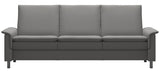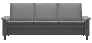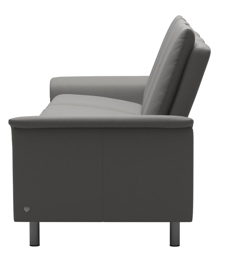 Modern and inviting. The tight but extremely soft cushioning of the Stressless Aurora gives the sofa a distinct and modern look. Despite the clear lines it also got some nice details giving it an exclusive appeal. The sofa comes in a high back and a low back version, of course with individually adjustable seats to fit your personal requirements. Choose between steel or wooden legs in three different heights. Pair with its matching loveseat.