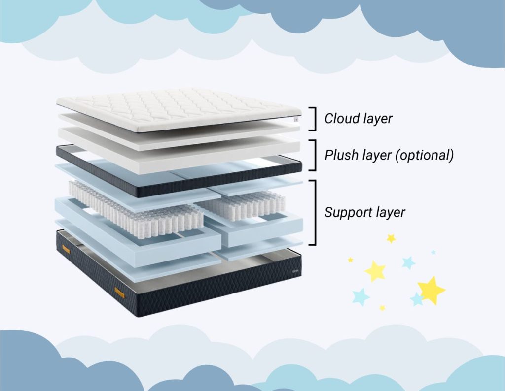 Positioned above the support core, the Plush layer enhances the mattress’s overall softness while working with the AdaptiveZones™ spring system to deliver balanced comfort and stability.