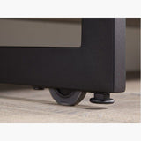 - Unique upper compartment includes a pass through to accommodate a soundbar speaker