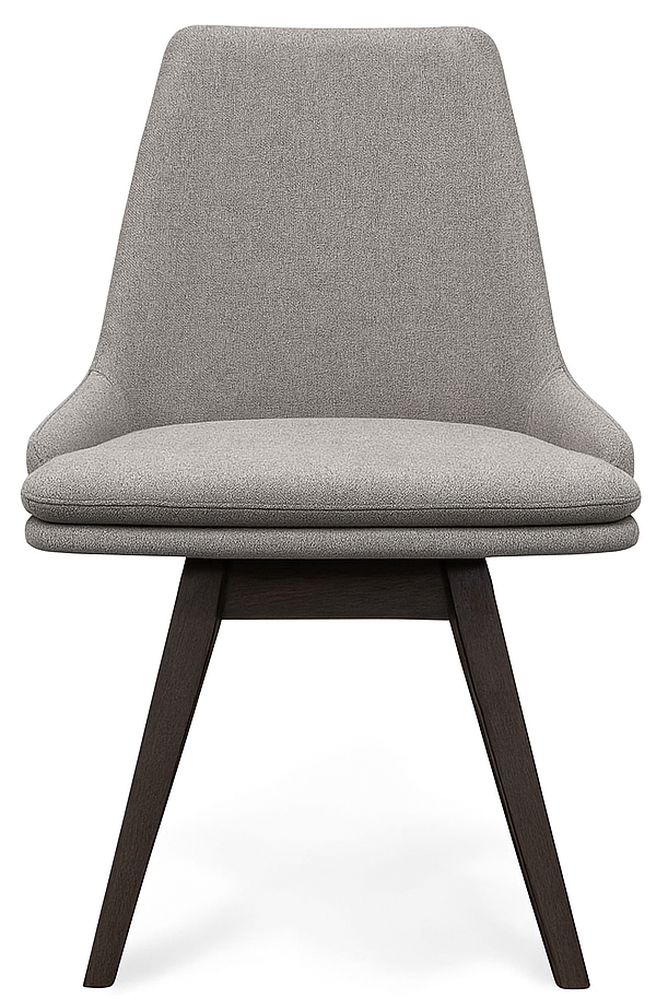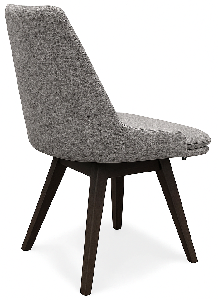 The stocked Skovby SM 819 Swivel Dining Chair is upholstered in Sienna Member 12 fabric (grey) — a soft yet durable performance textile designed for everyday use. The tightly tailored seat and back provide lasting comfort, while the solid walnut lacquer legs bring warmth, contrast, and natural elegance to the modern silhouette.