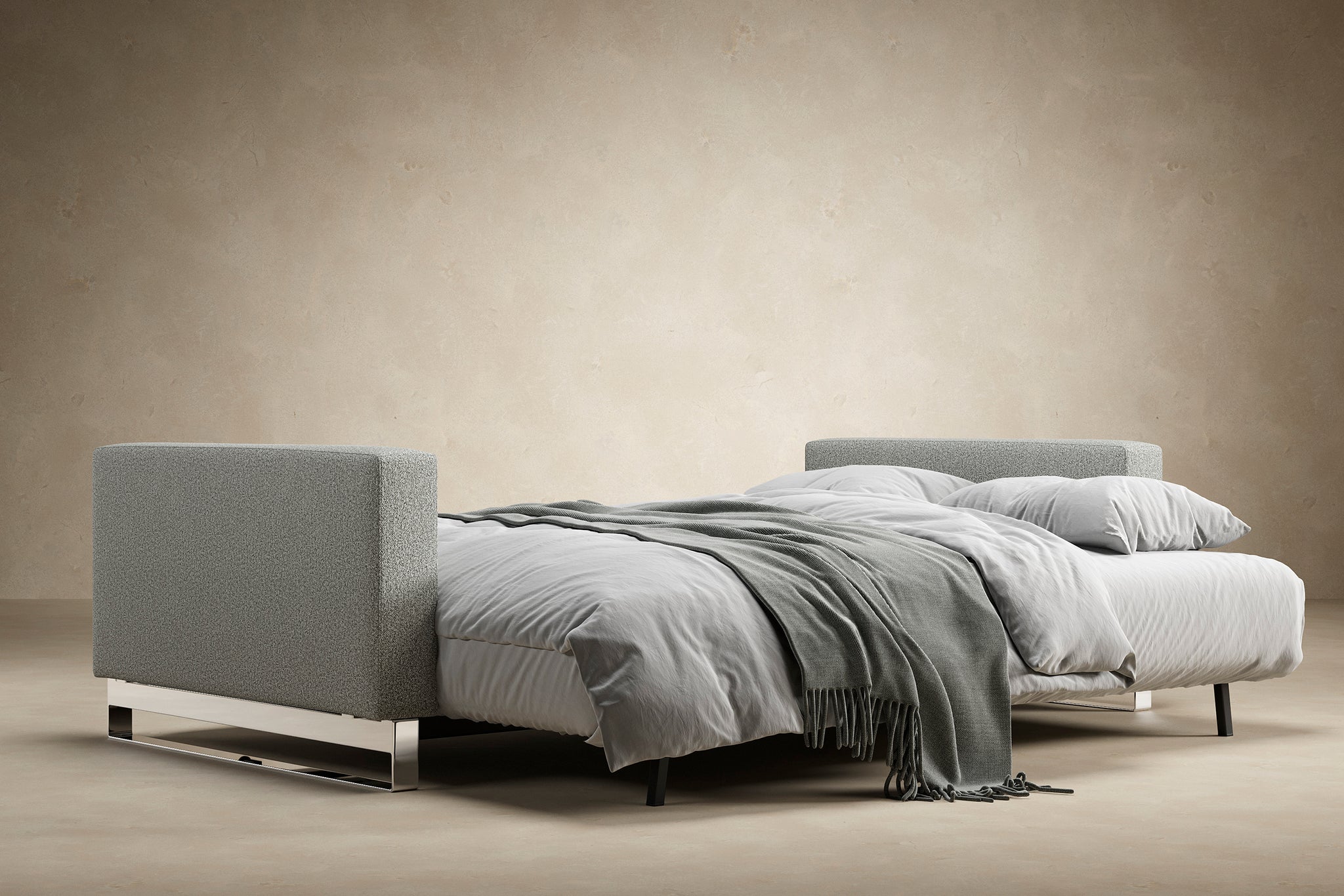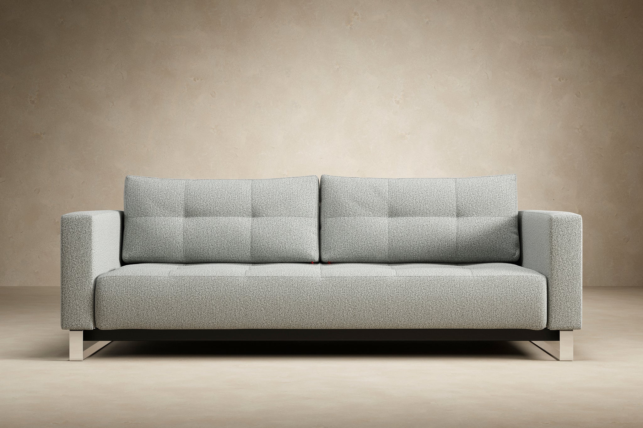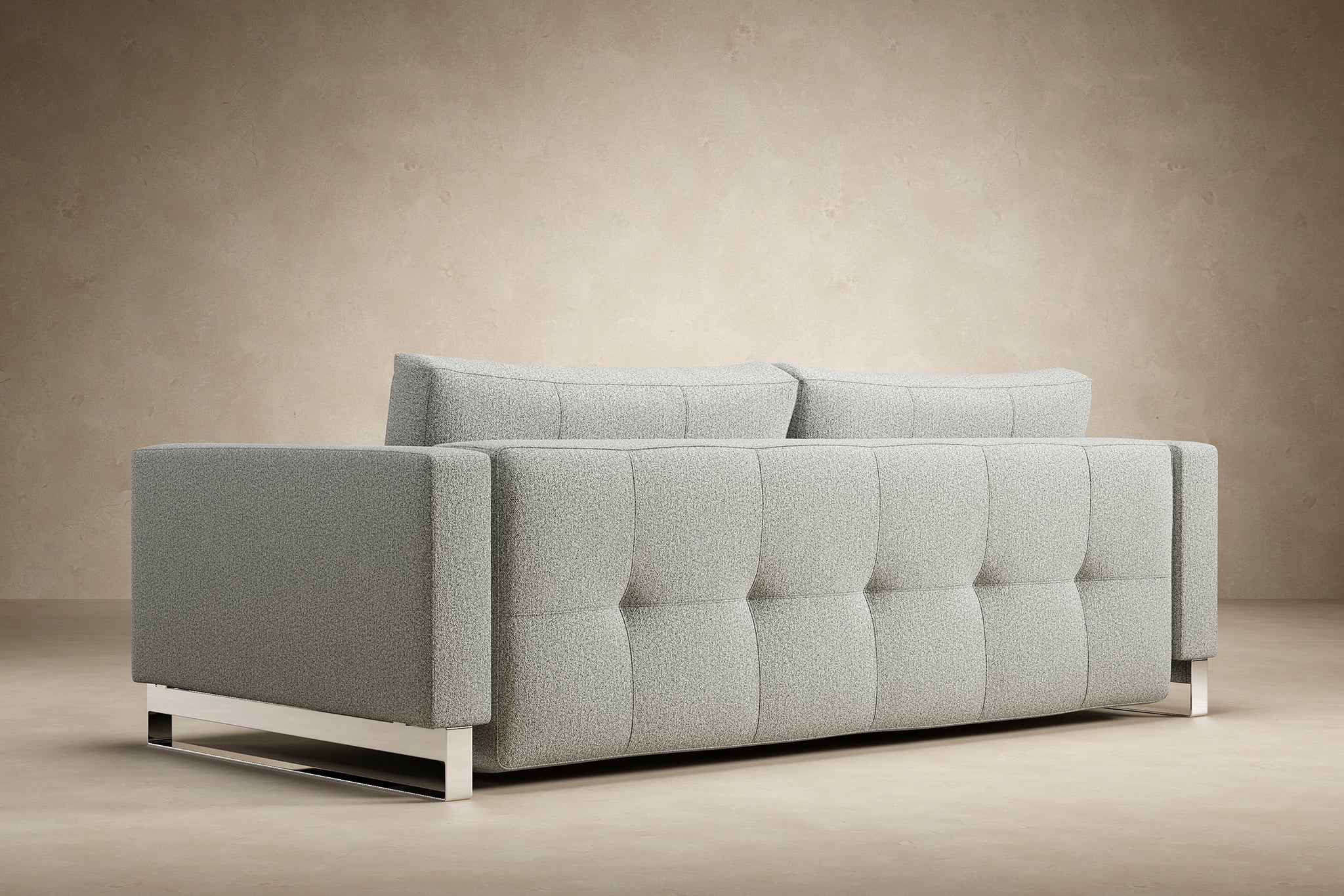The Cassius D.E.L. Sofa Bed combines the elegance of a classic upholstered sofa with the convenience of a spacious queen-sized bed. Its clean lines, chrome legs, and stitched details make it a refined centerpiece, while the built-in Excess Pocket Spring mattress ensures superior comfort both day and night. Designed by Per Weiss (2008).