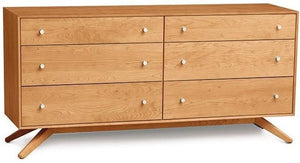Astrid dressers and chests feature soft-close, full extension drawer glides. Crafted in solid cherry hardwood, solid maple or a combination of solid walnut and dark chocolate maple, the Astrid collection can be special ordered in five finishes* with a variety of knob or pull options. All finishes are GREENGUARD Certified for low chemical emissions.