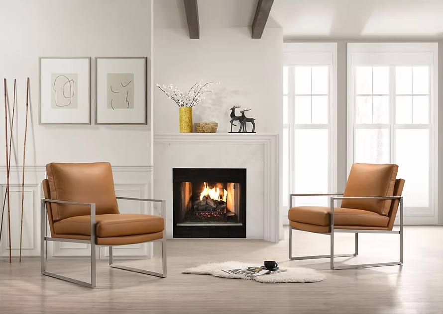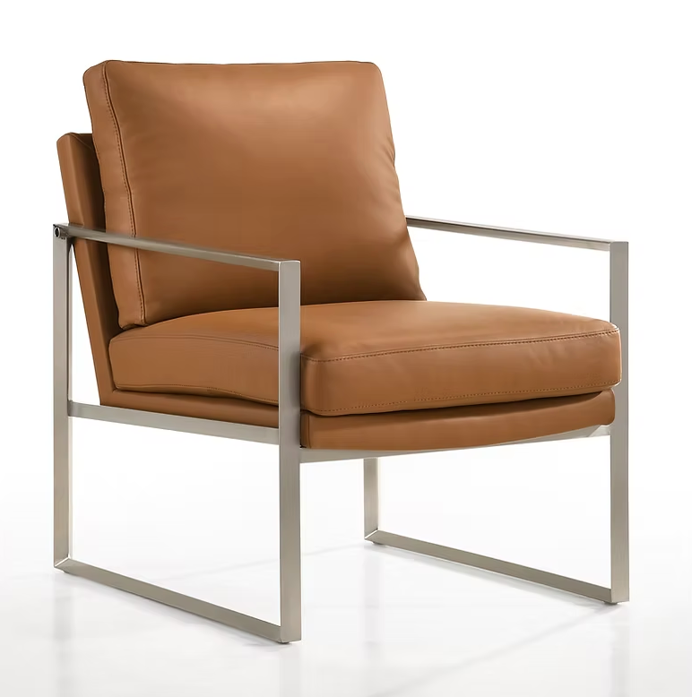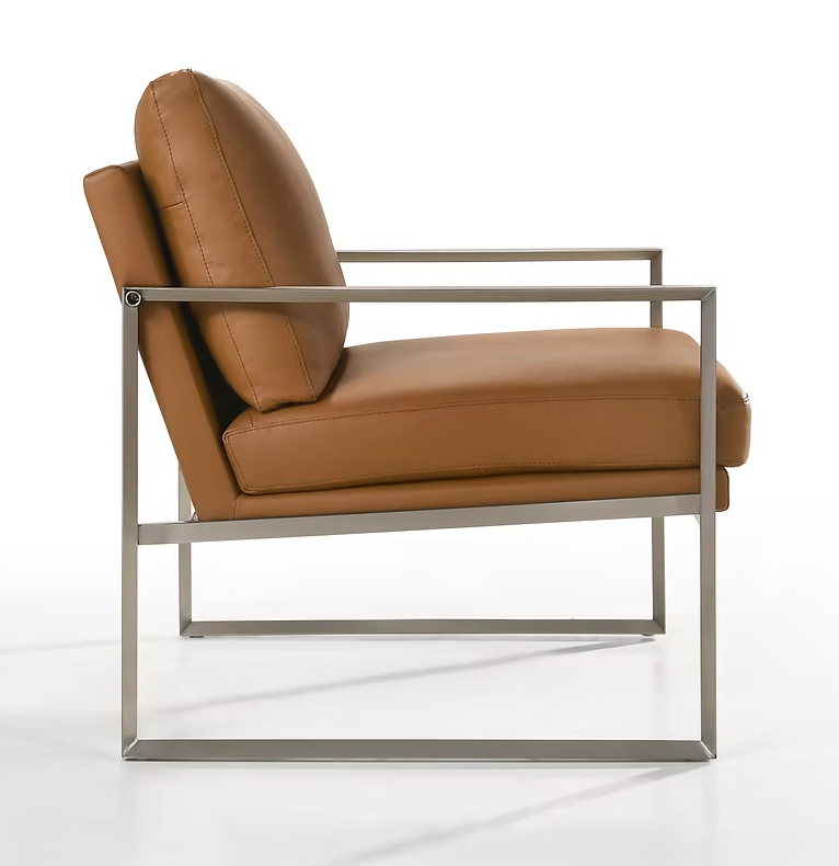 What We Stock: 643 Saddle Genuine Leather; Brushed Stainless Steel Legs
