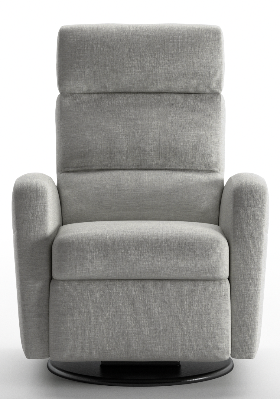 The Sloped is Luonto’s most supportive and modern recliner chair. Each arm is crafted into a beautiful sloped design, allowing the Sloped to be unique. As always, to fulfill Luonto’s commitment to quality and practicality, Luonto has built the Sloped with a 4-way adjustable headrest and a swivel glider base, and if purchased in the battery powered mode, a terrific remote-controlled transitional design.