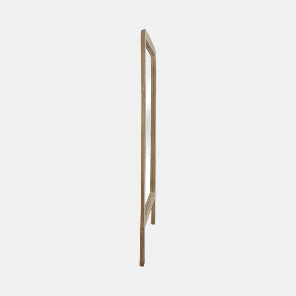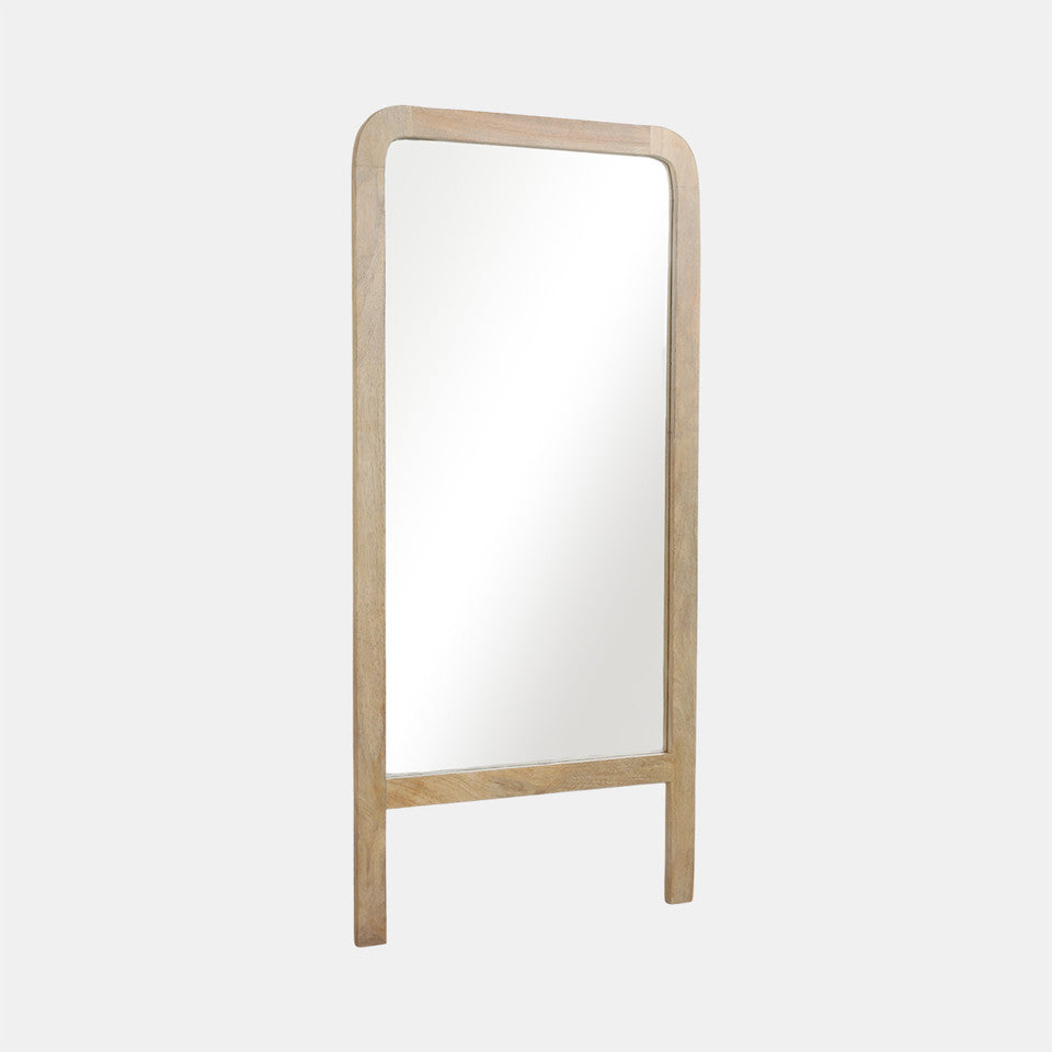 The leaner design with footed support makes this mirror easy to place against any wall, creating a spacious and open feel. Its natural wood frame adds warmth and complements a variety of interior styles.
