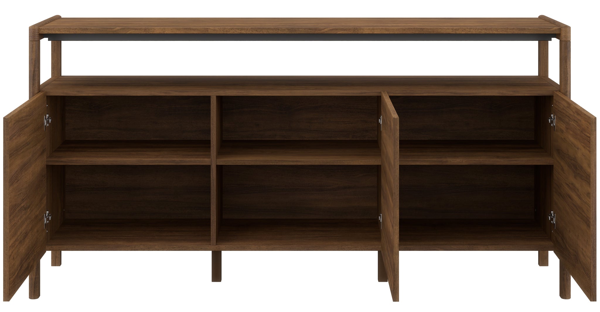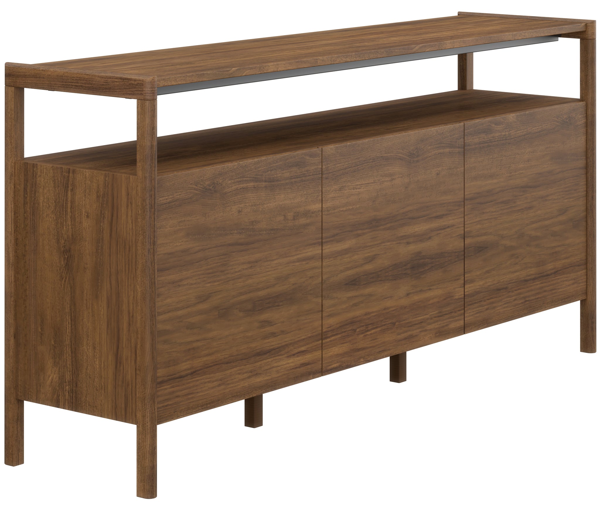 Integrated door handles create a seamless, minimalist look, while the solid wood frame adds warmth and refined detail. The result is a sideboard that balances aesthetic sophistication with functional versatility—perfect for dining rooms, living spaces, or entryways.