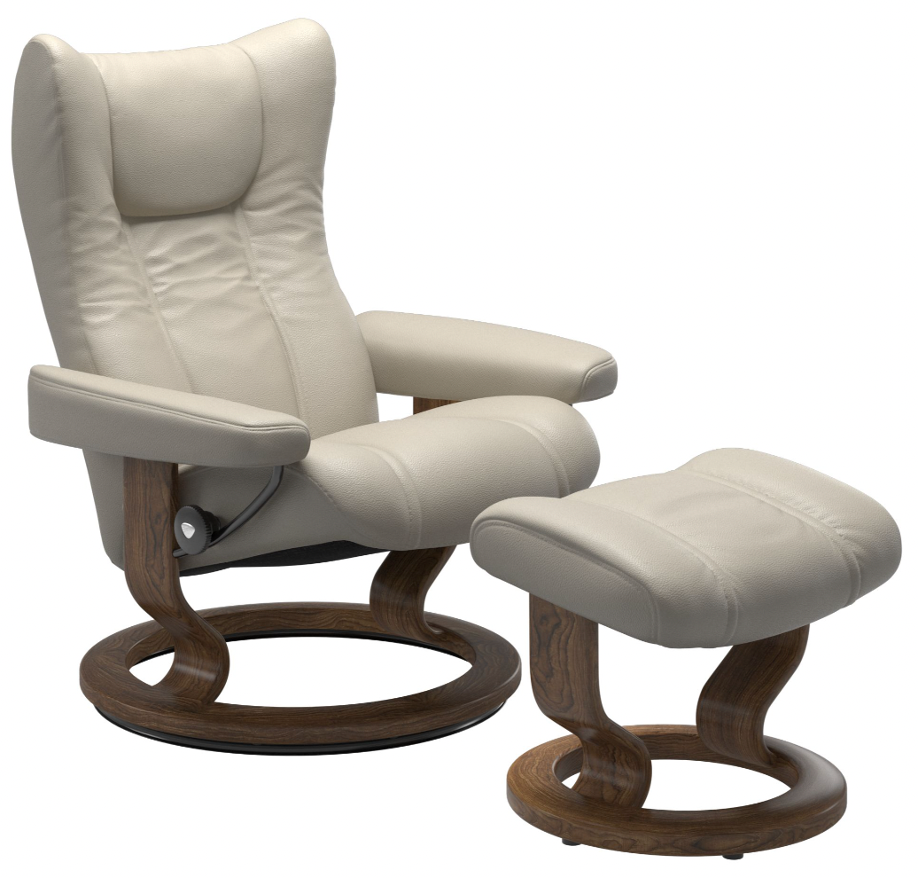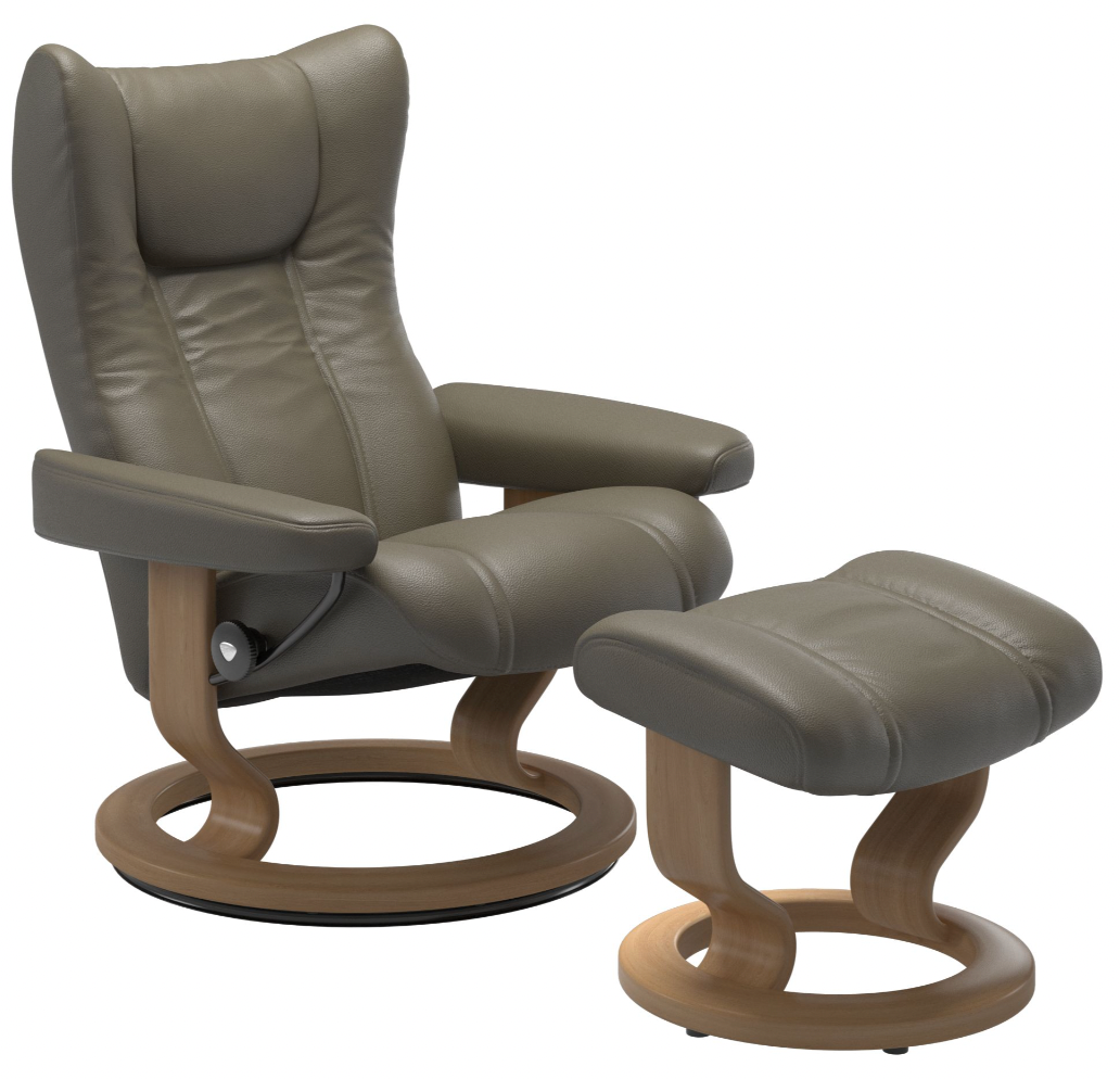 Stressless Wing (M) Recliner With Ottoman (Classic Base)