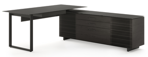 An ideal all-in-one office solution, the Corridor L-Desk by BDI offers executive styling and a wealth of features for a complete home office. This handsome L-shaped desk provides plenty of workspace and storage, whether placed in a corner or commanding the center of your home office. Highly versatile, the desk can be assembled on either the left or right side while providing equal access to locking drawers and file storage, supplies, a printer, and a CPU unit hidden away behind ventilated louvered doors. The Corridor 6531 L-Desk's thoughtful design also includes wire management features that make cords virtually disappear, along with a highly durable and unbelievably soft-feeling satin-etched glass desktop that protects from dings, scratches, and fingerprints.