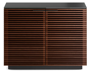Design: A design that easily transitions from media cabinet to all-purpose furniture, with louvered doors that ensure components stay out-of-sight while air, sound, and media signals pass freely through.