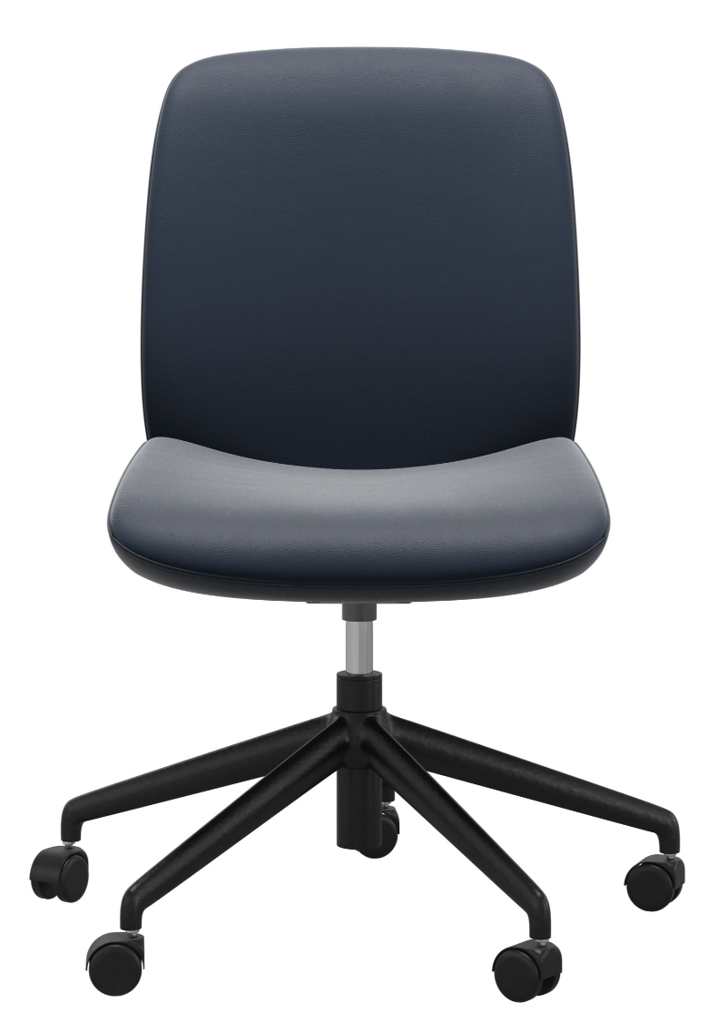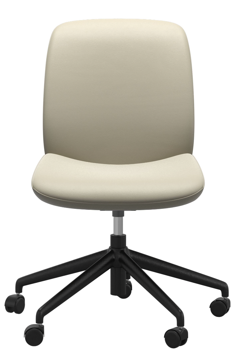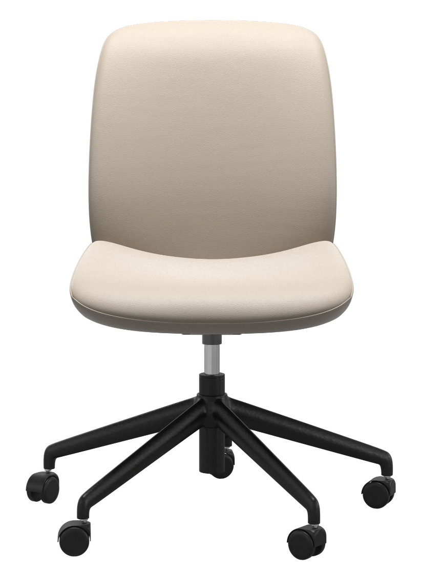 The Stressless® Bay Home Office Low Back Armless – Matte Black Base delivers refined Scandinavian style and adaptive comfort—crafted to keep you supported and relaxed through every workday.