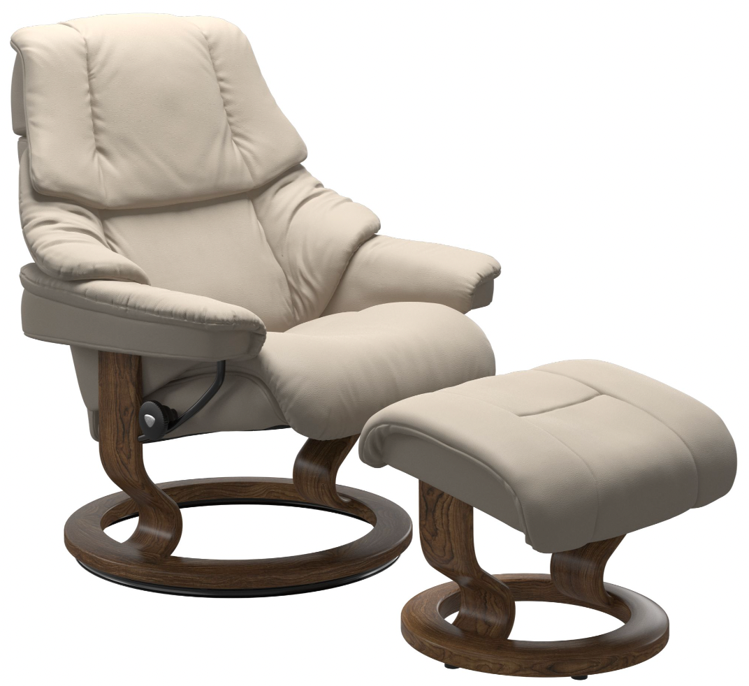 The over pads filled with soft foam and height-adjustable neck support has made the Stressless Reno one of our all-time favorites. It has become the symbol of what a great recliner should be: a comfortable, thought-through and durable piece of furniture that gives you that great Stressless experience year after year. The comfortable neck-rest can be adjusted up to 4 inches to support users that need that extra bit of length.