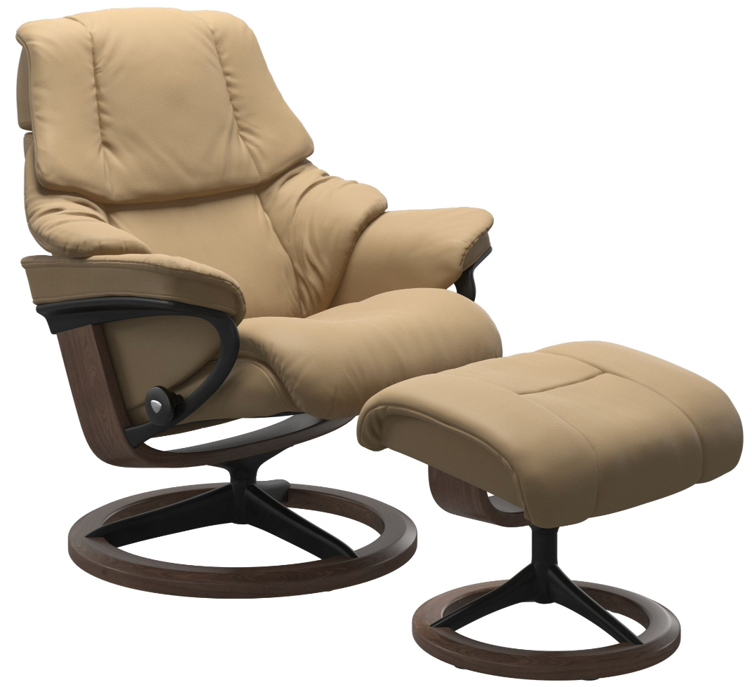 The over pads filled with soft foam and height-adjustable neck support has made the Stressless Reno one of our all-time favorites. It has become the symbol of what a great recliner should be: a comfortable, thought-through and durable piece of furniture that gives you that great Stressless experience year after year. The comfortable neck-rest  can be adjusted up to 4 inches to support users that need that extra bit of length.