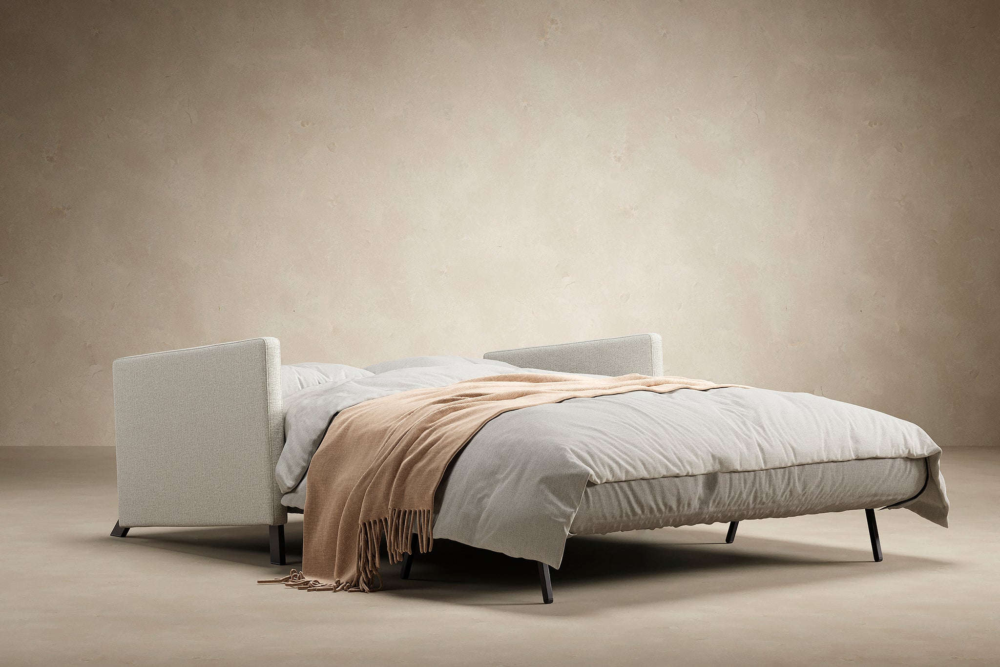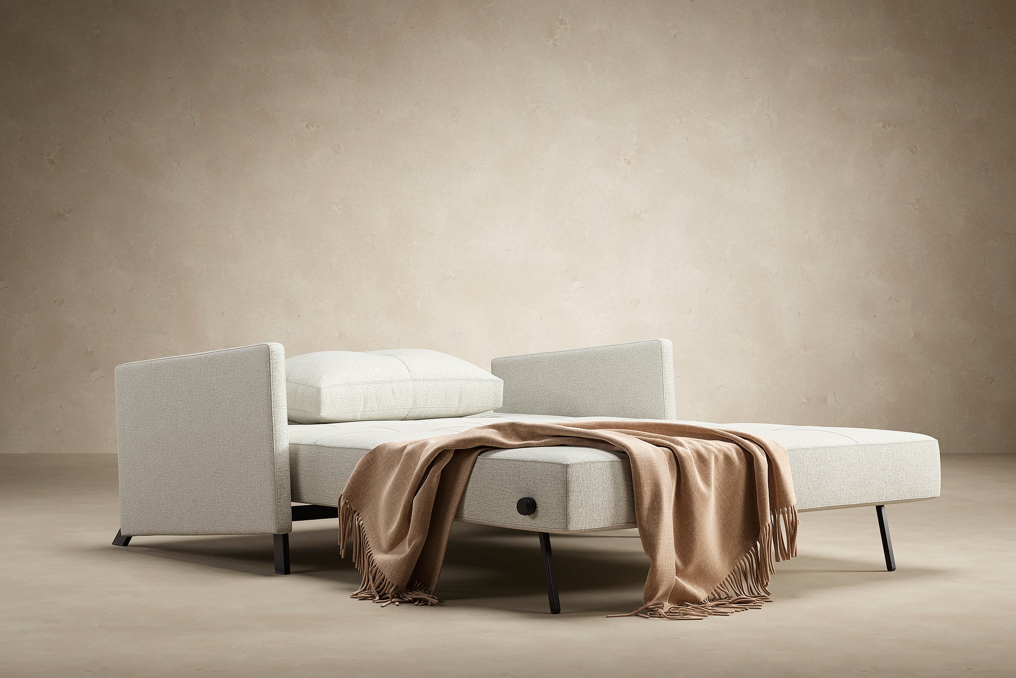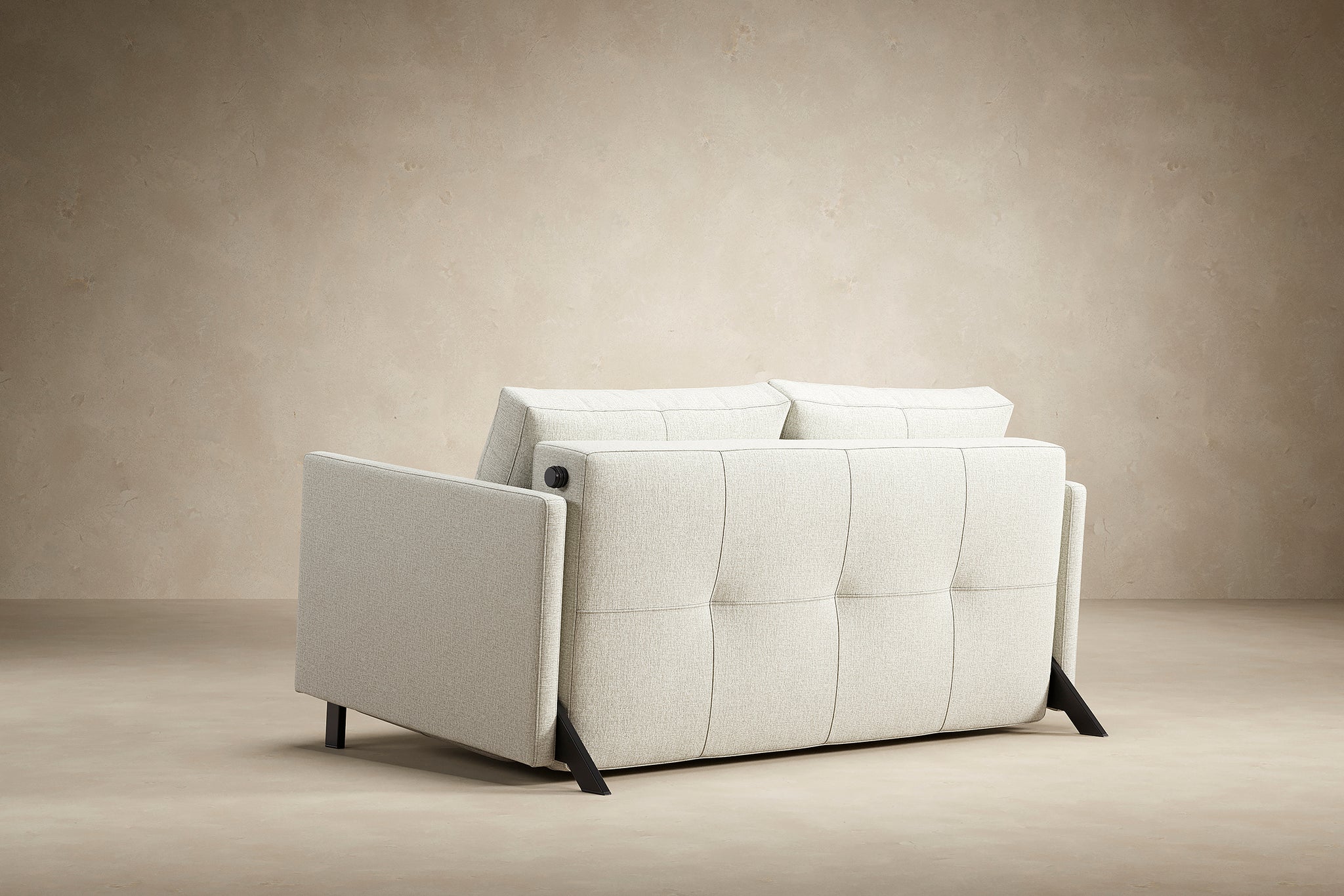 Cubed with Arms combines space optimization, multifunctionality, and high structural quality into a compact, stylish sofa bed. With slim upholstered armrests and a hidden bedding box, it easily transforms into a comfortable full-size bed in seconds.