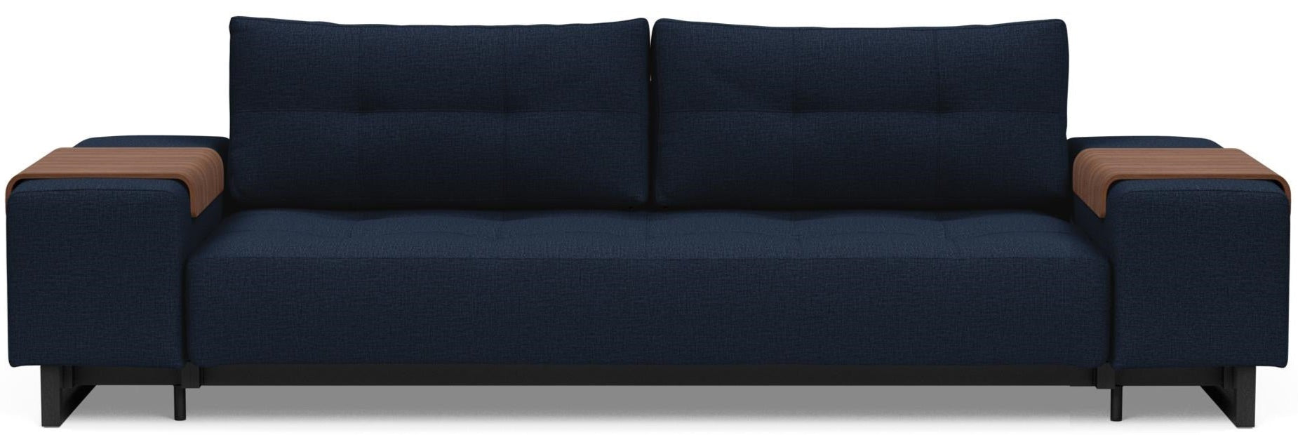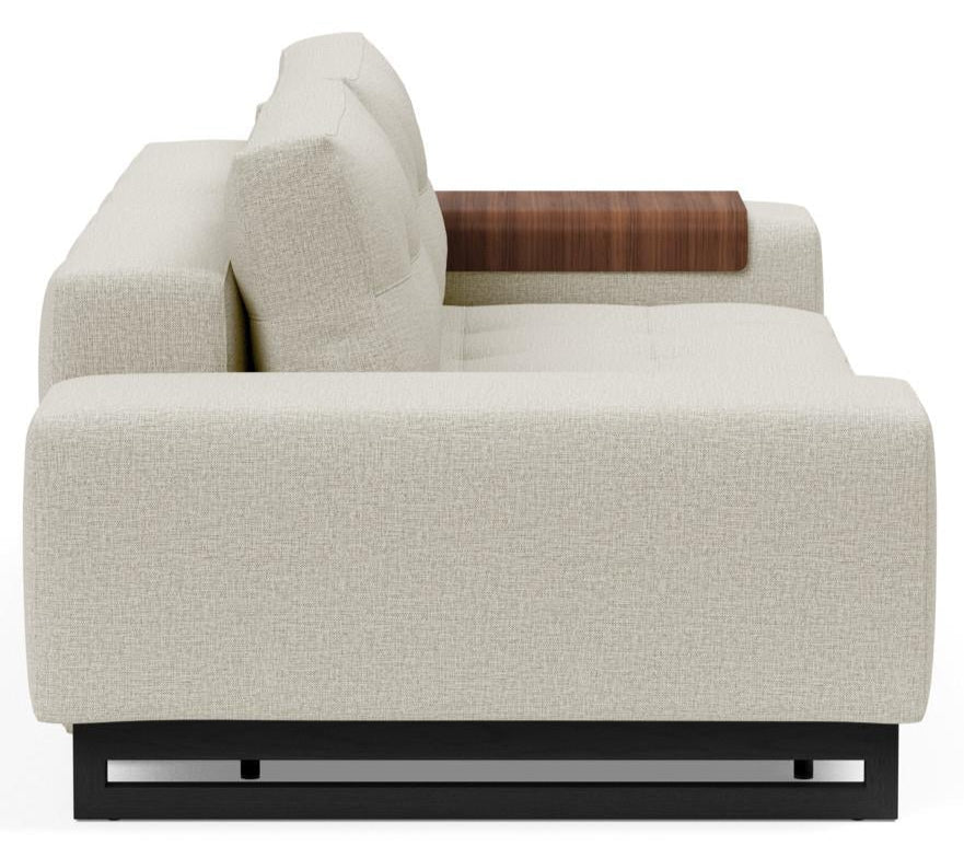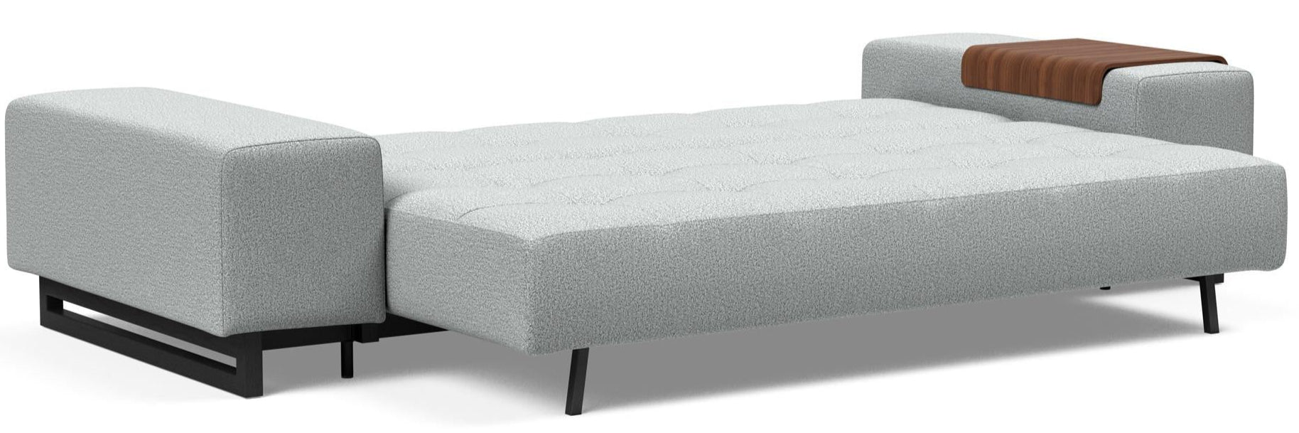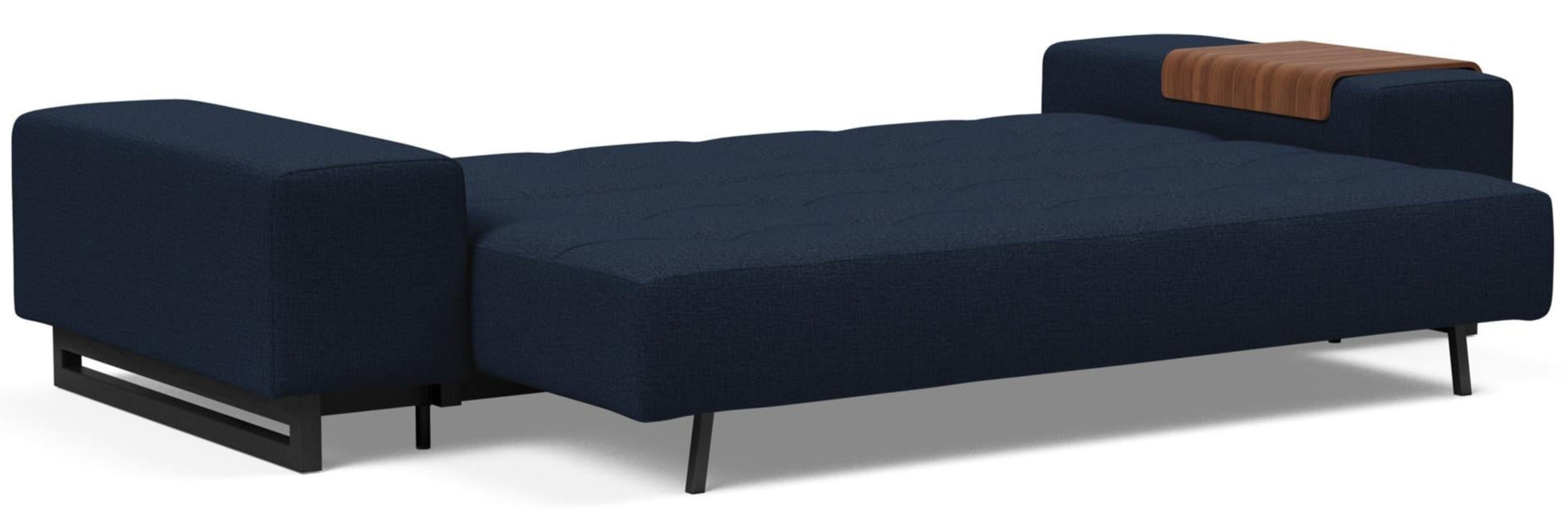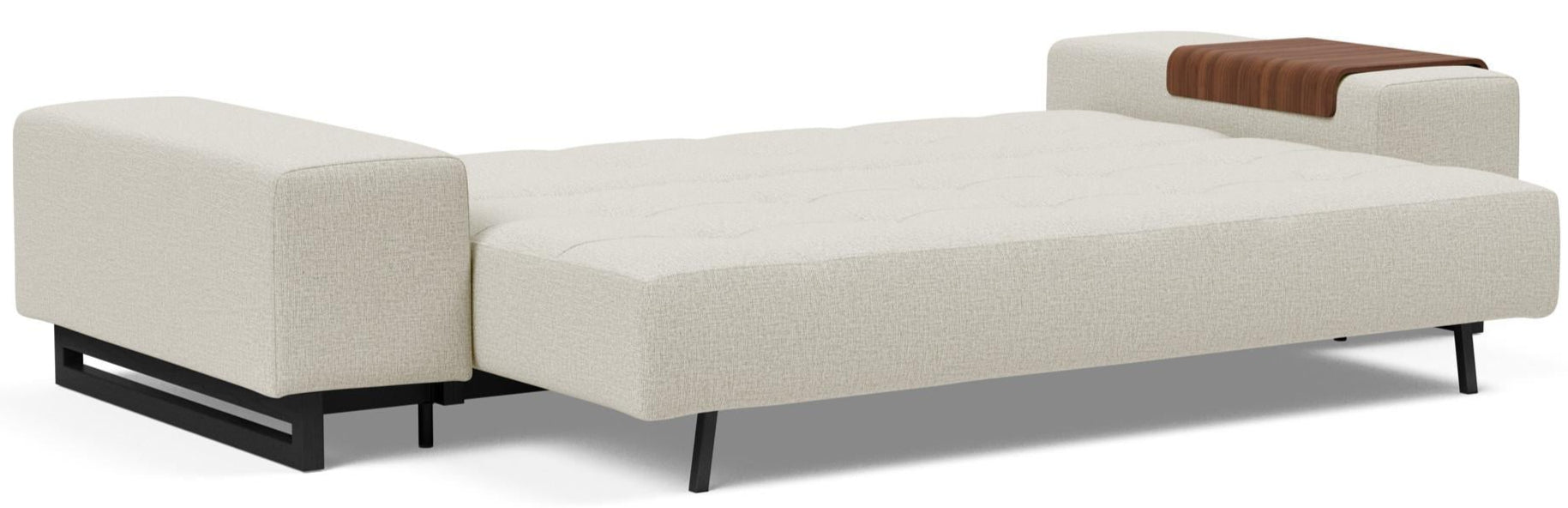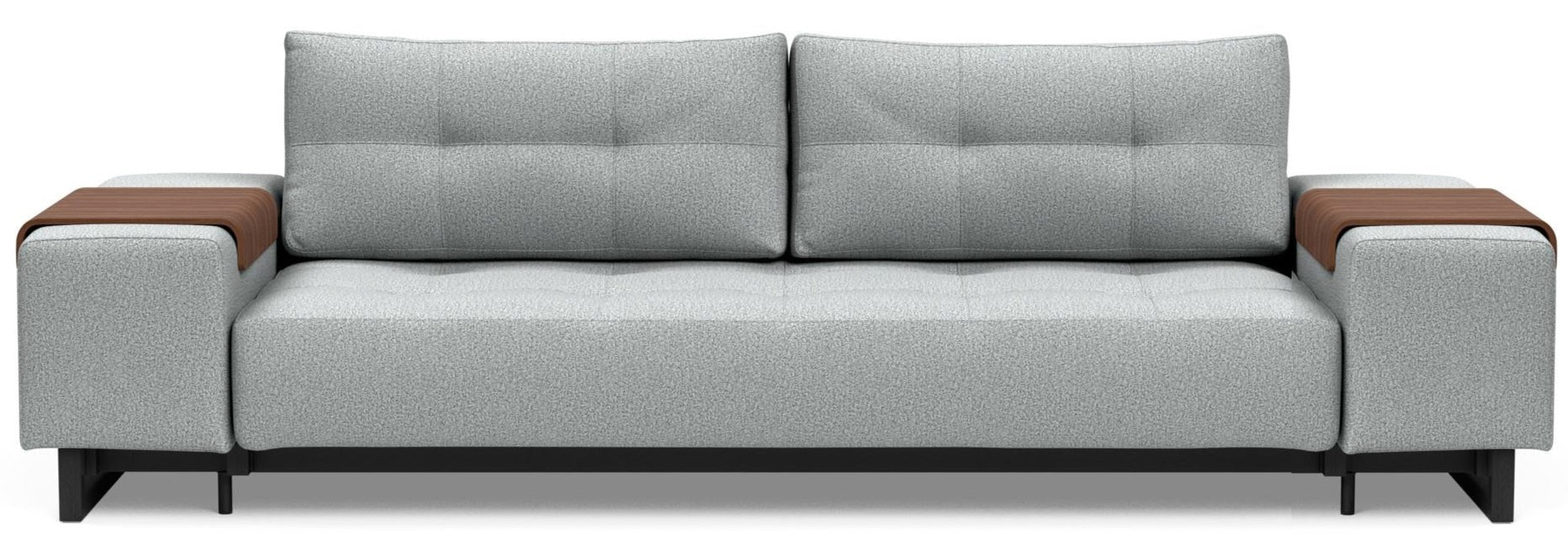 The Grand D.E.L. Sofa Bed combines impressive proportions with refined design. Broad upholstered armrests, walnut veneer trays, and stitched textile details make it a statement piece for any modern living space. Effortlessly converting from sofa to queen-size bed, it balances elegance and functionality for the design-conscious urbanite.