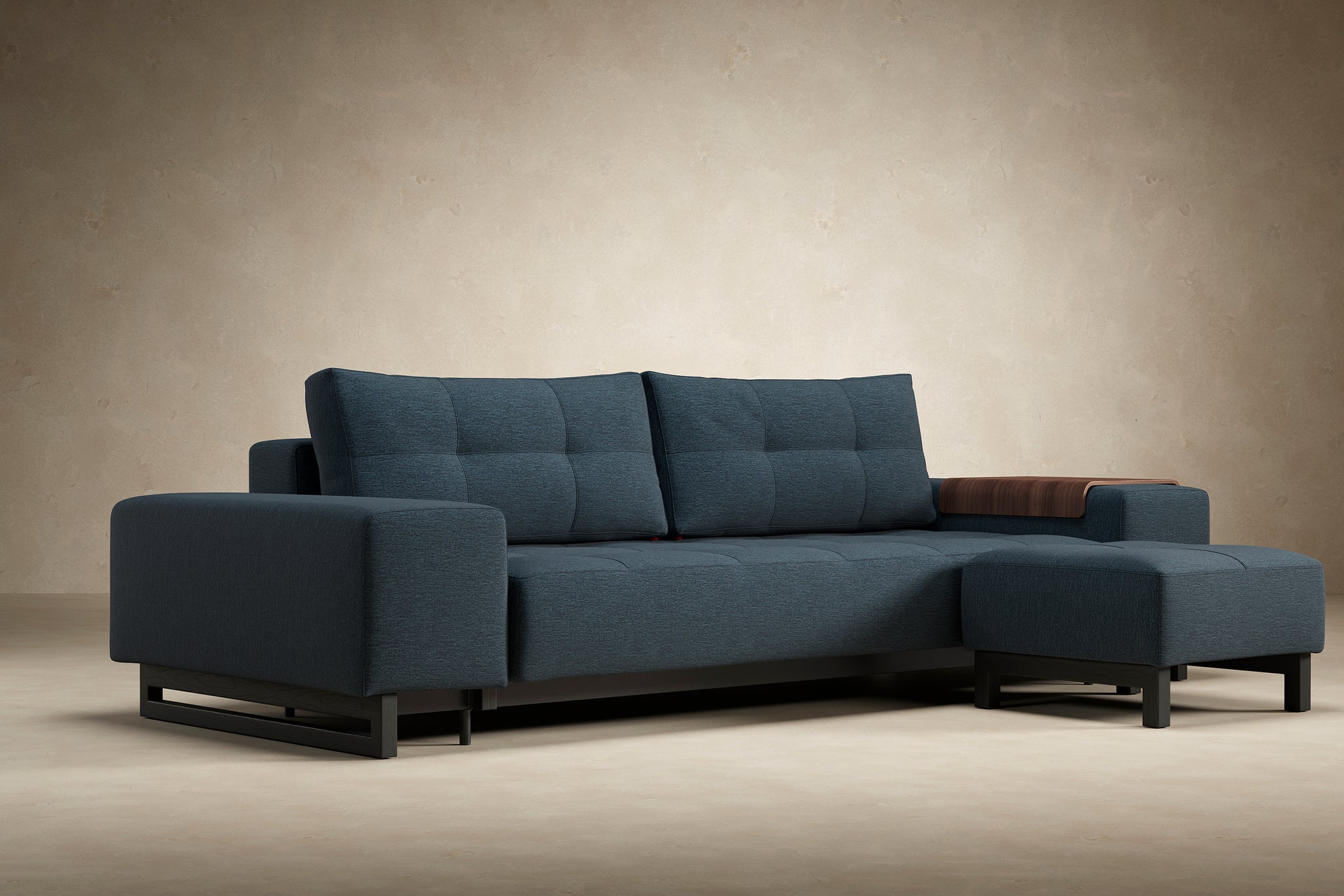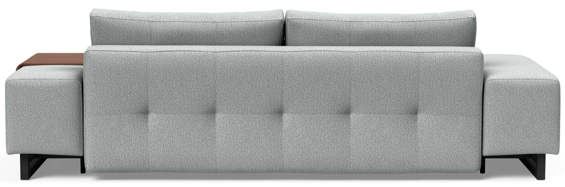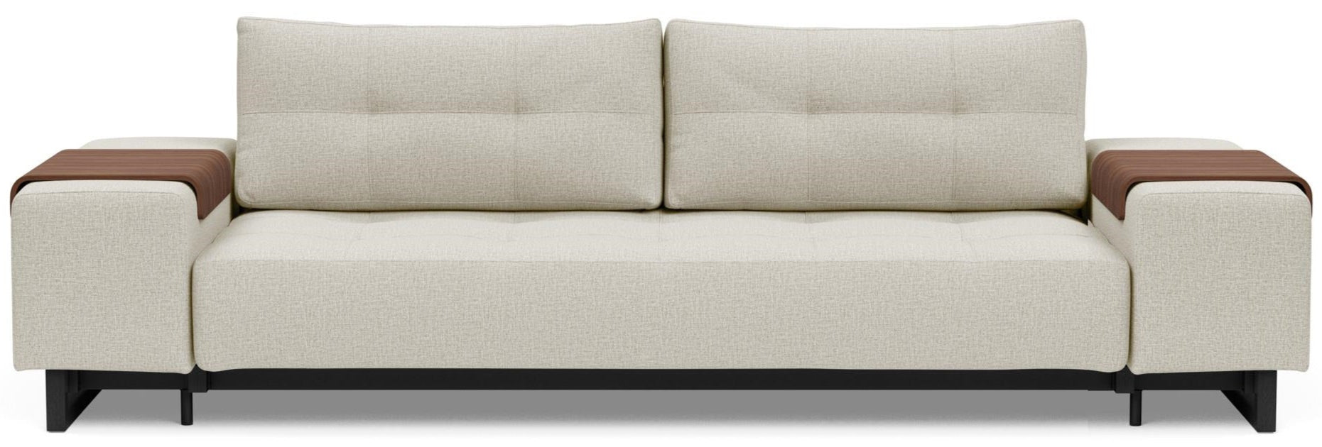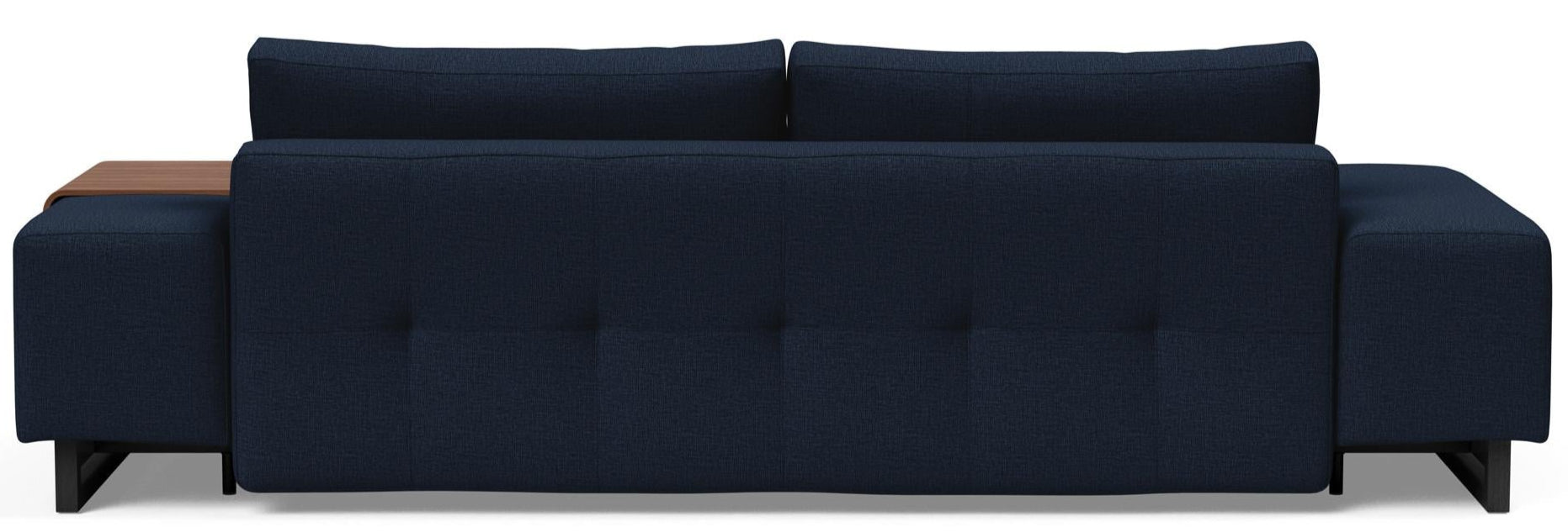 The Grand D.E.L. Sofa Bed combines impressive proportions with refined design. Broad upholstered armrests, walnut veneer trays, and stitched textile details make it a statement piece for any modern living space. Effortlessly converting from sofa to queen-size bed, it balances elegance and functionality for the design-conscious urbanite.