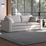 This modern sofa sleeper showcases a low-leg design and plush pillow-top seat cushions. It effortlessly transforms into a king-size bed and comes with two decorative pillows.