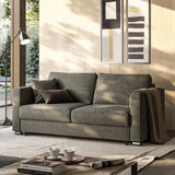 The Fantasy design harbors a secret worth exploring between its track arms and below its loose back cushions. With one simple motion, it converts into a ready-to-use sleeper, in less than one minute.