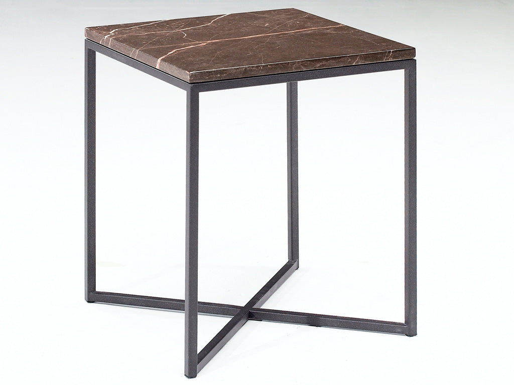 This elegantly simple square shaped end table is topped with brown marble top that has been protected with a water and stain resistance treatment.