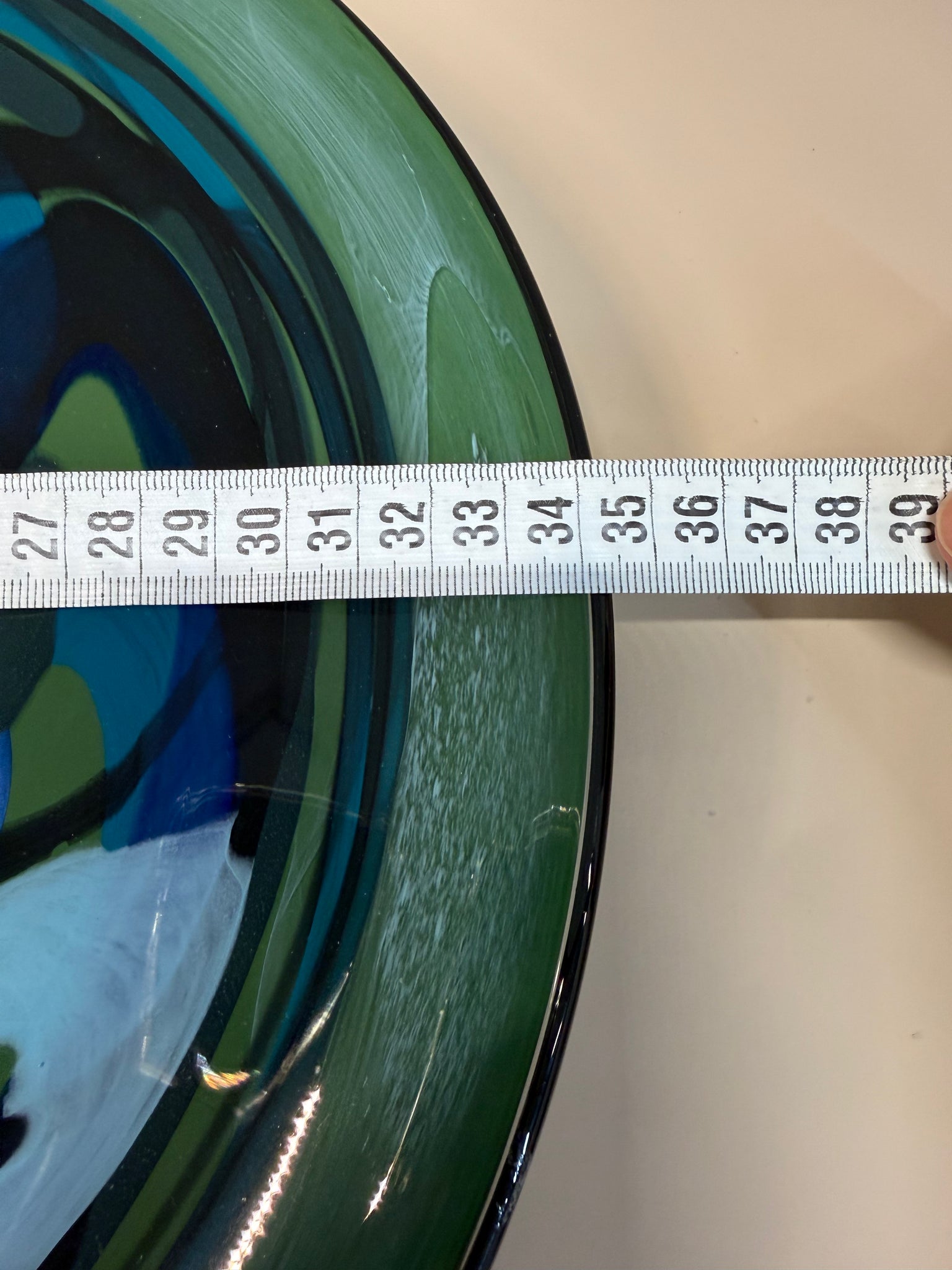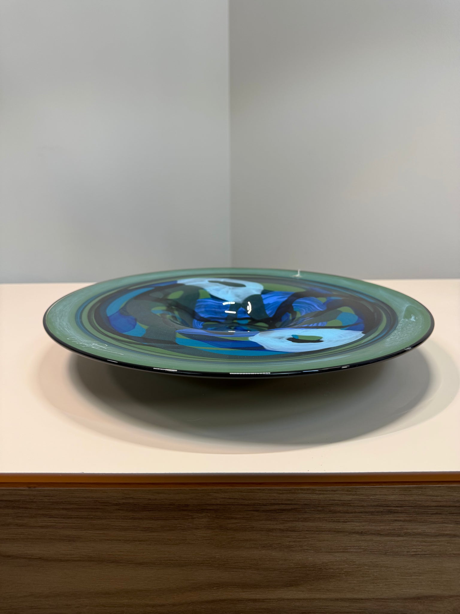 With its low profile and generous diameter, this piece functions beautifully as a sculptural centerpiece or display object, blurring the line between functional plate and contemporary art. It stands equally well on a table, console, or wall-mounted display.