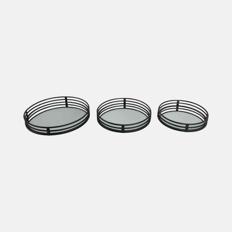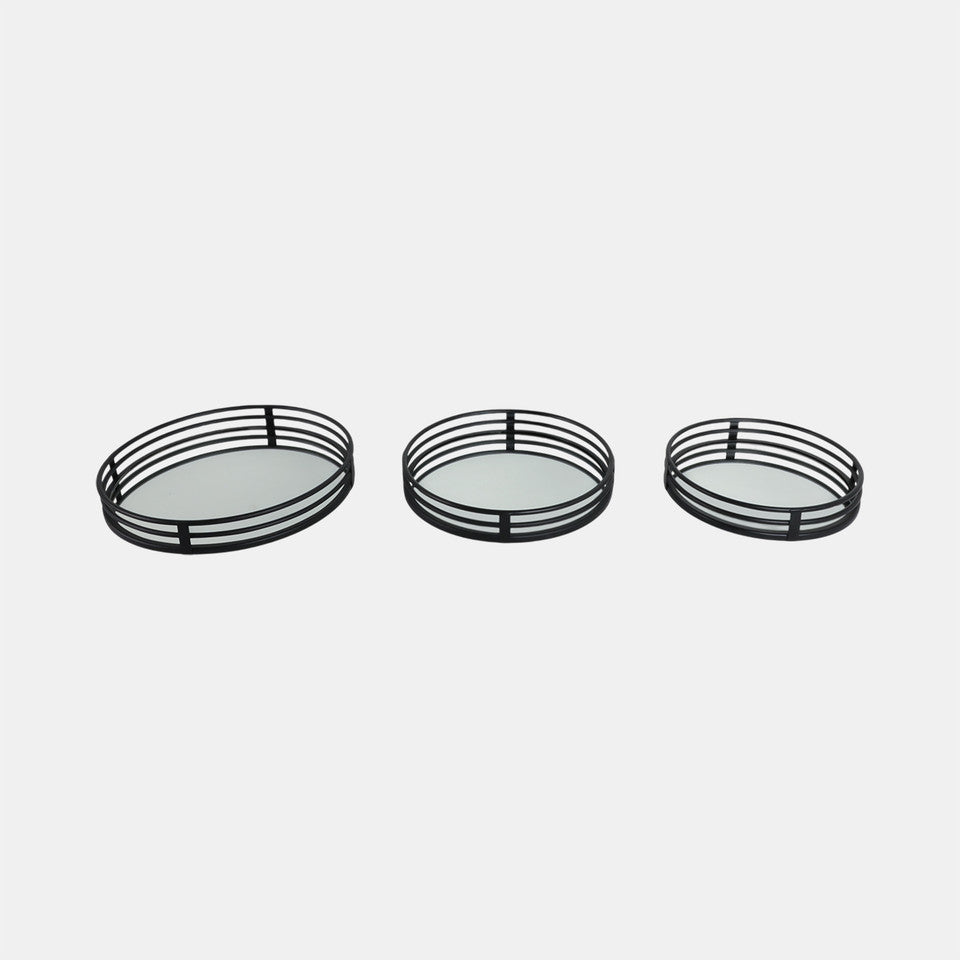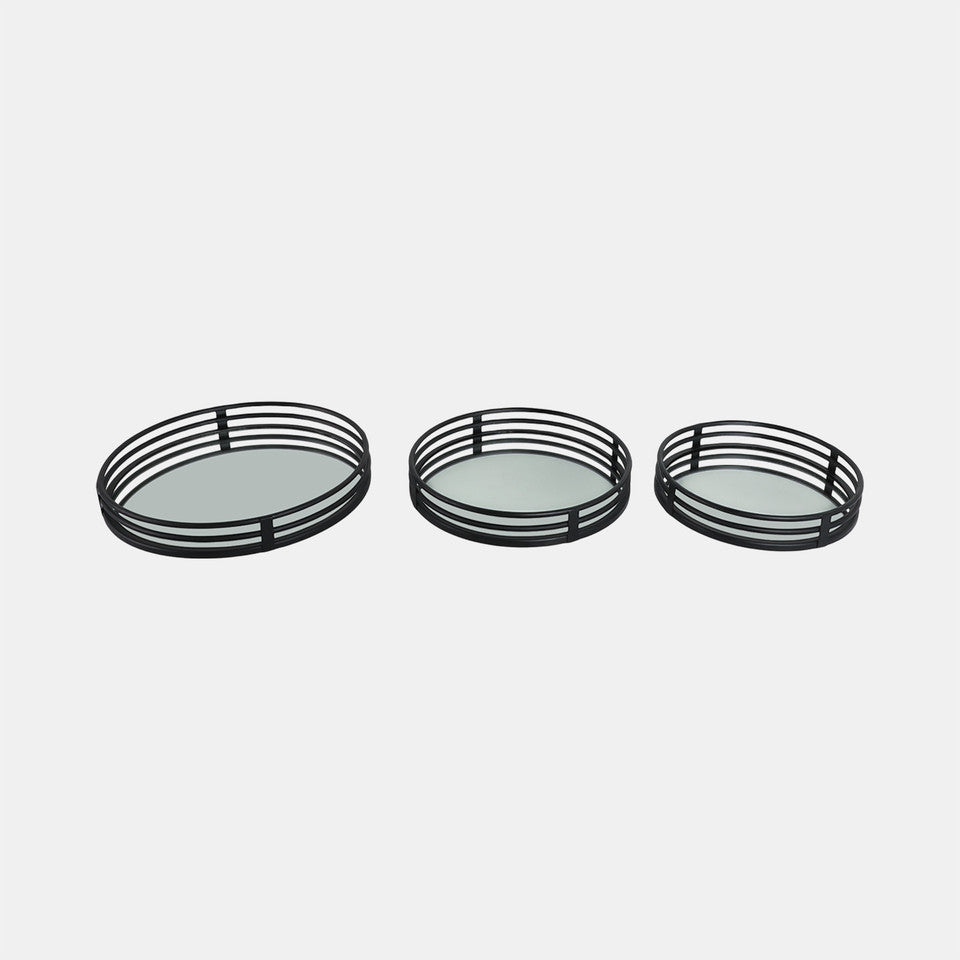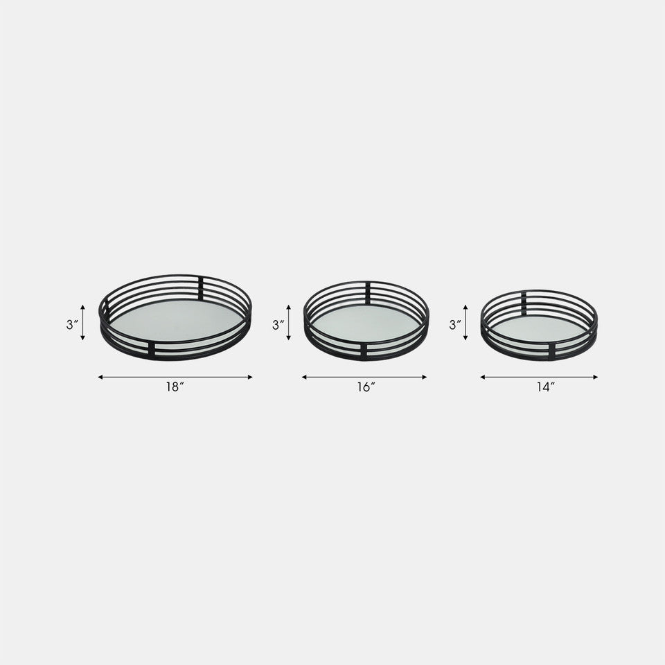 Elevate your décor with this sleek round mirrored tray, designed to bring modern sophistication to any space. Featuring a reflective mirrored base and clean black metal wire frame, this tray adds a refined contemporary touch whether styled on a coffee table, vanity, console, or office setting.