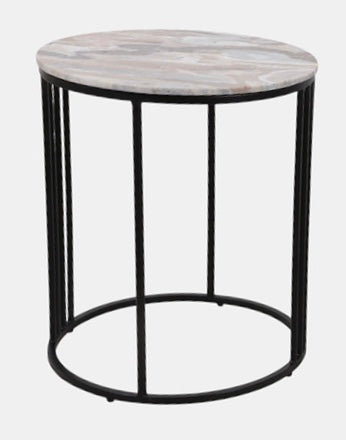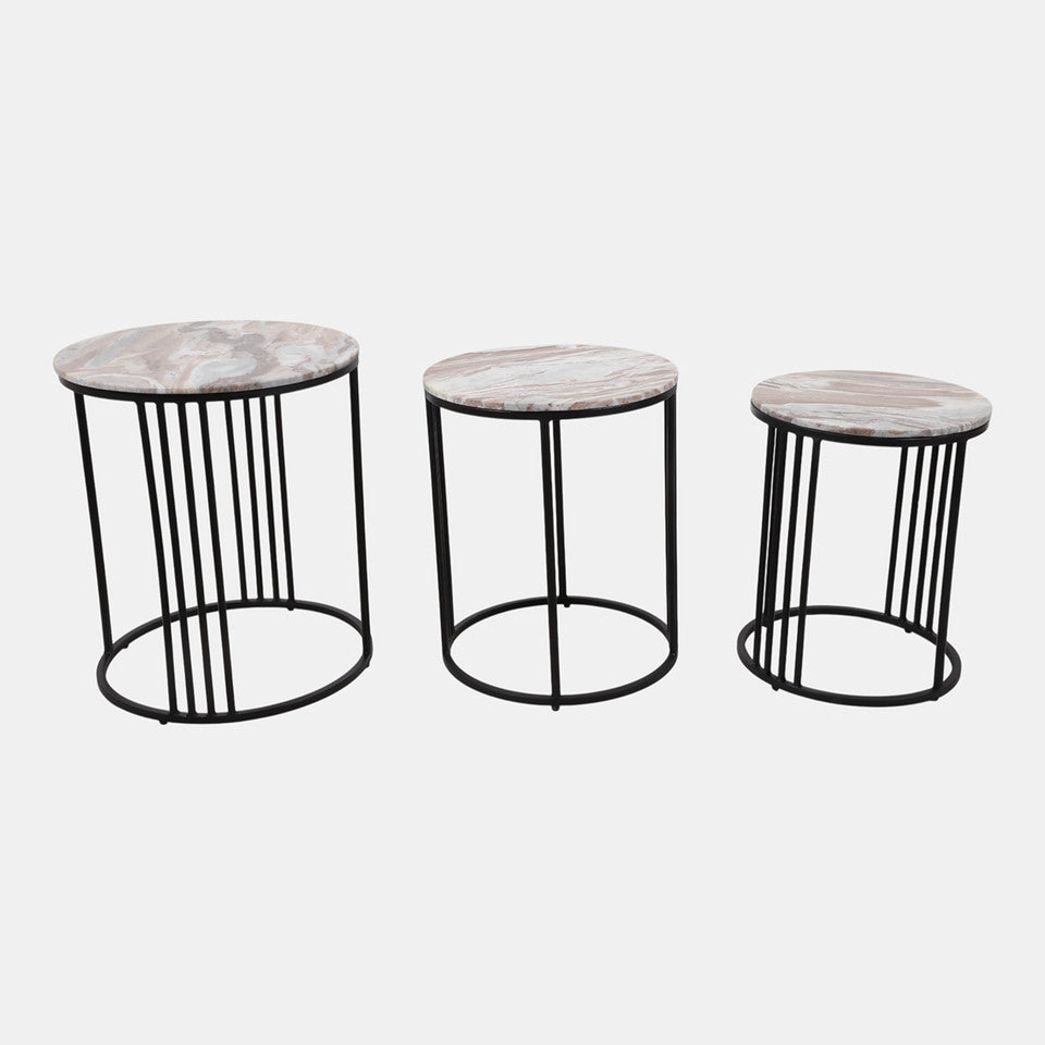 Bring modern elegance into your home with these marble-top side tables, available in three versatile sizes. Each piece features a warm brown marble surface with natural veining, supported by a sleek black metal base for a refined, contemporary look. Whether styled individually or together, these tables offer both functional surface space and sculptural appeal.