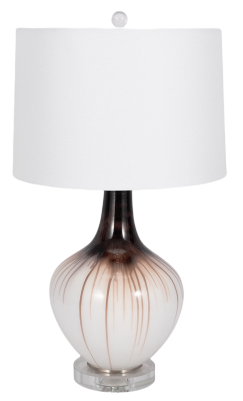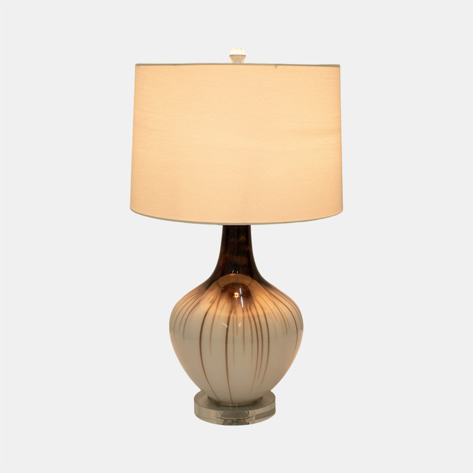This chic table lamp offers a soft, ambient glow, creating a cozy and inviting atmosphere. Its neutral color palette makes it easy to pair with a variety of decor styles, while the brown accents add warmth and contrast, making it a stylish focal point.