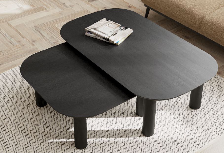 Bring effortless style and functionality to your living space with the Monsun Square Coffee Table. Inspired by Scandinavian simplicity and modern design, its soft, rounded edges and thick cylindrical legs create a clean yet bold presence. Finished in a painted black wood grain, this table anchors both contemporary and transitional interiors with ease.