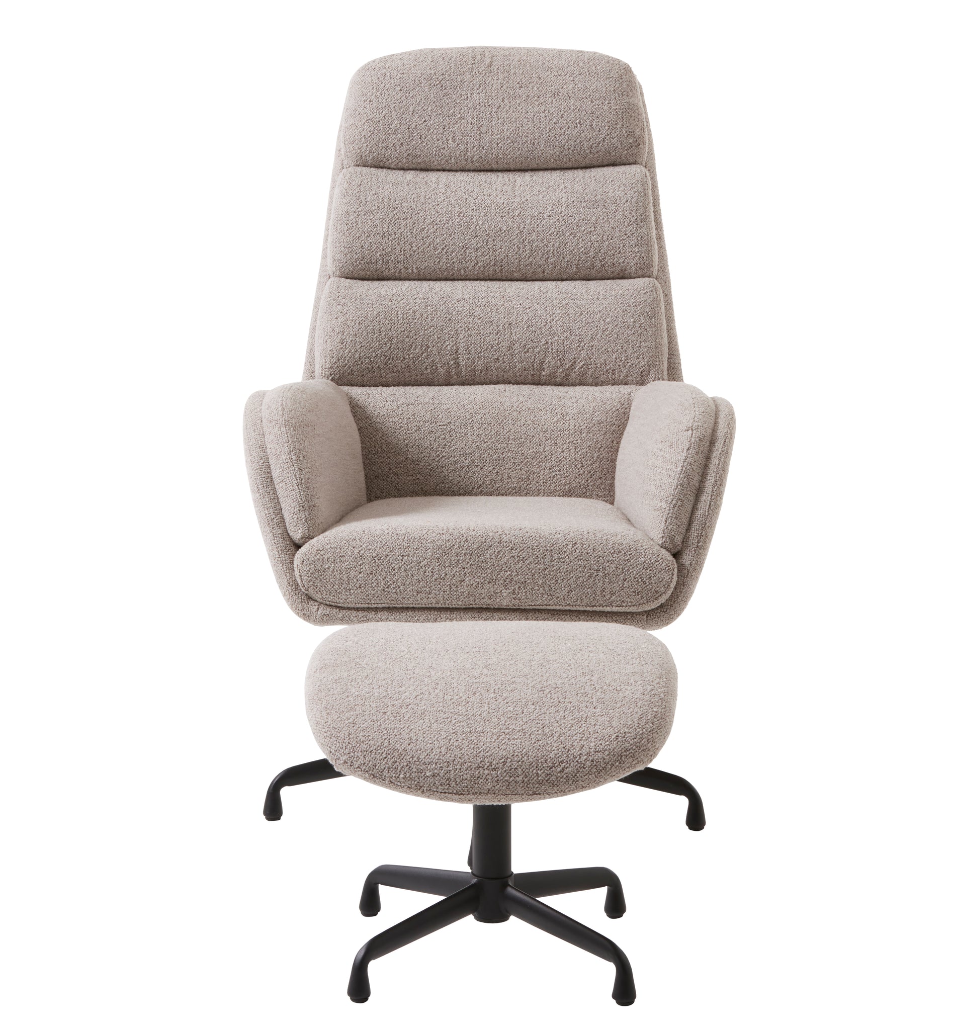 A free-standing footrest provides customizable leg support, while the smooth 360-degree swivel function keeps you engaged and connected to your surroundings. Supported by a sleek five-star black metal base, this recliner combines contemporary elegance with lasting durability—making it a versatile choice for any living room, office, or reading nook.