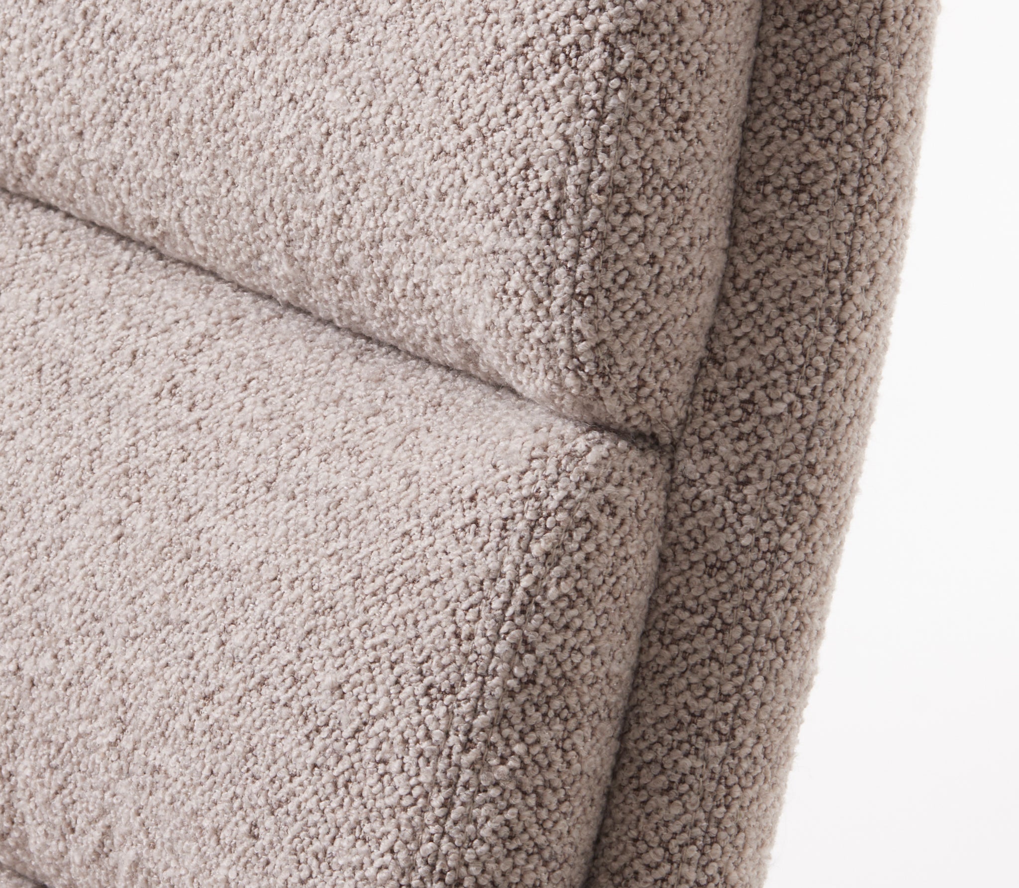 Upholstered in Oeko-Tex certified taupe teddy bouclé fabric